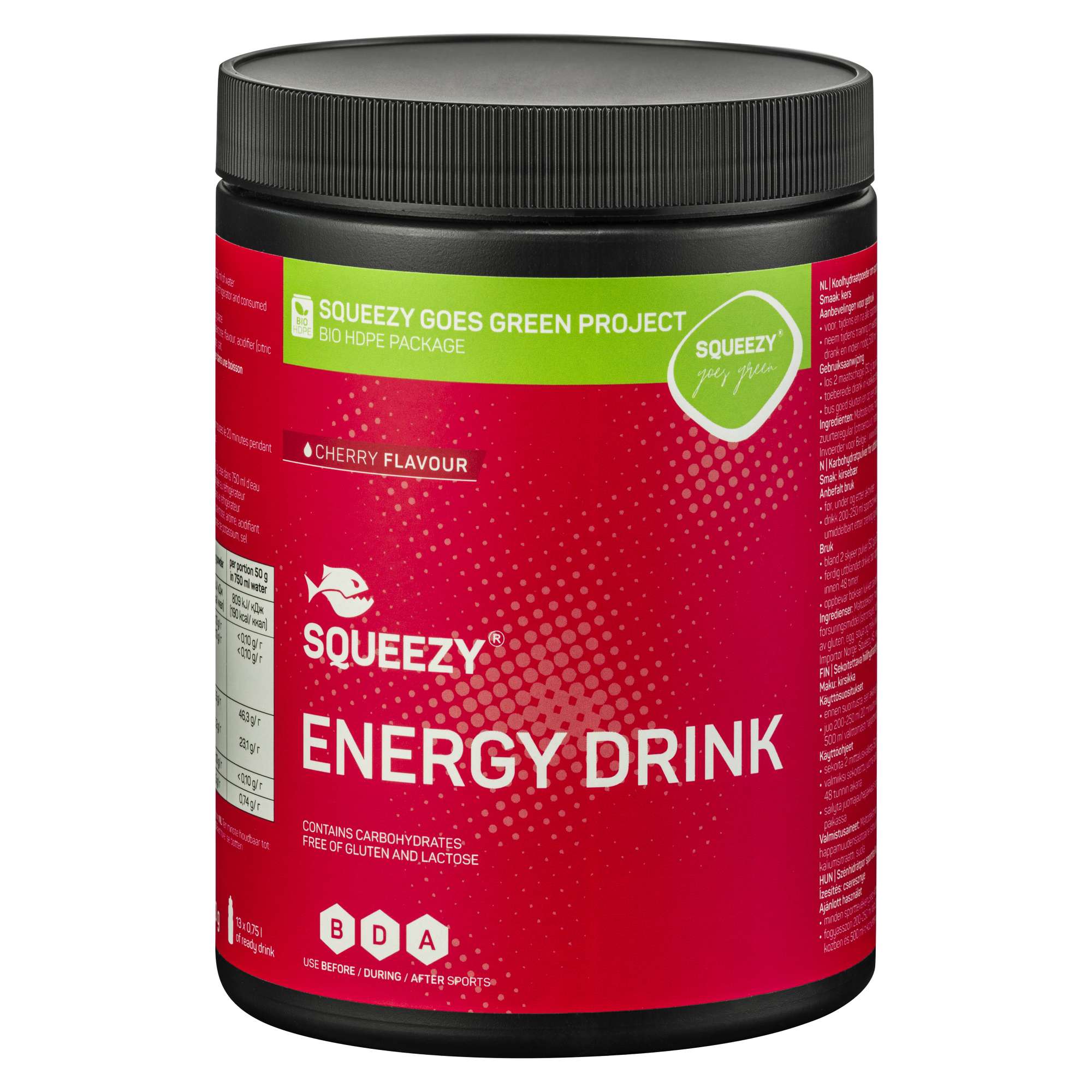 SQUEEZY Energy Drink har en mild naturlig smak og er skånsom mot magen. Gir effektiv energitilførsel og uten slimdannelse i svelg. Mljøvennlig og nedbrytbar emballasje laget av sukkerør.